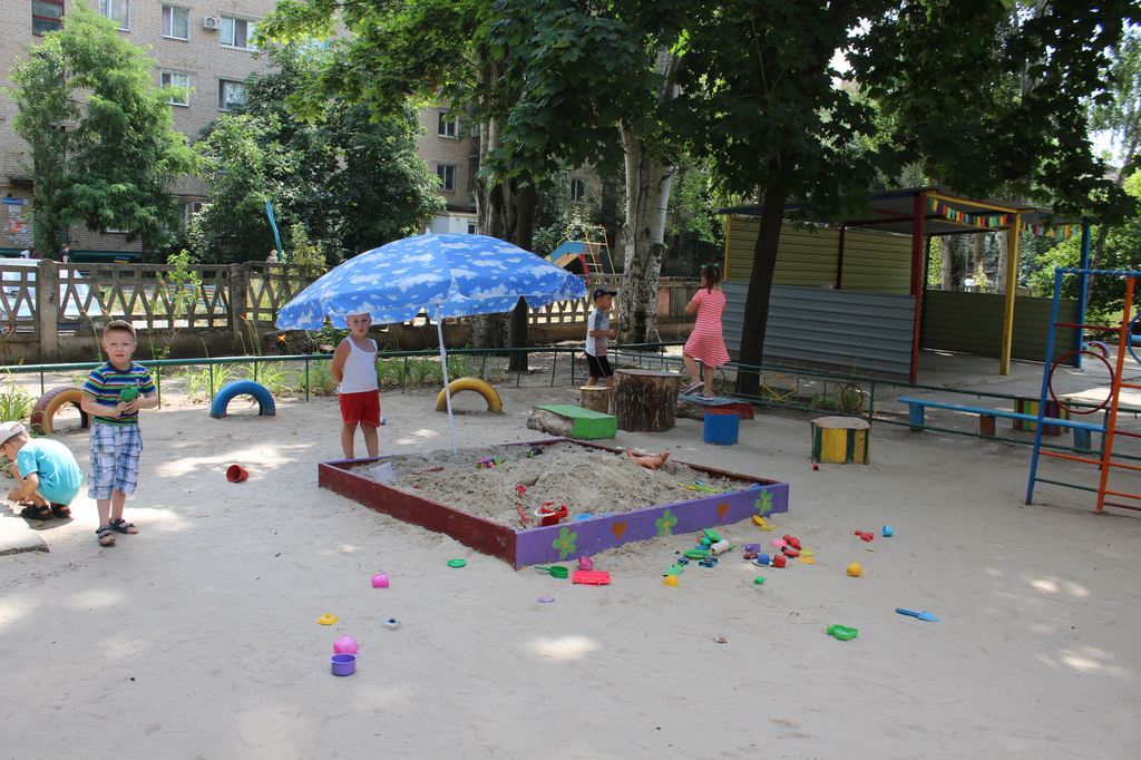 Иду по дорожкам детсада № 40 «Калинонька», и сердце радуется. Да, эти малыши проводят жаркие денечки в душном городе. Зато на детсадовском участке у них - подобие морского берега. Над песочницей возносится в высоту яркий пляжный зонтик. На пеньках стоят тазики с водичкой, которую малыши вдохновенно разливают. И даже рыбок магнитных ловят!