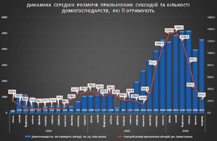 Средний размер субсидии в Украине в июне составил 217,6 гривен, что в шесть раз меньше, чем в разгар отопительного сезона: в январе 2016 года эта сумма была на уровне 1319,5 гривен.
