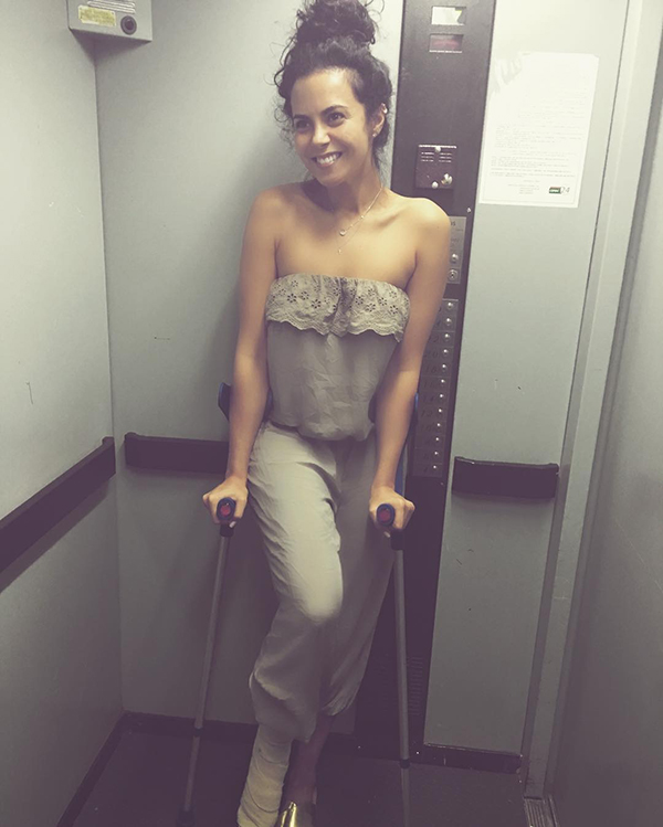 Певица Настя Каменских, которая сильно травмировалась после неудачного прыжка с парашютом, выписалась с больницы и продолжает лечение дома. Сейчас артистка вынуждена передвигаться на костылях. Настя регулярно ездит на перевязки.