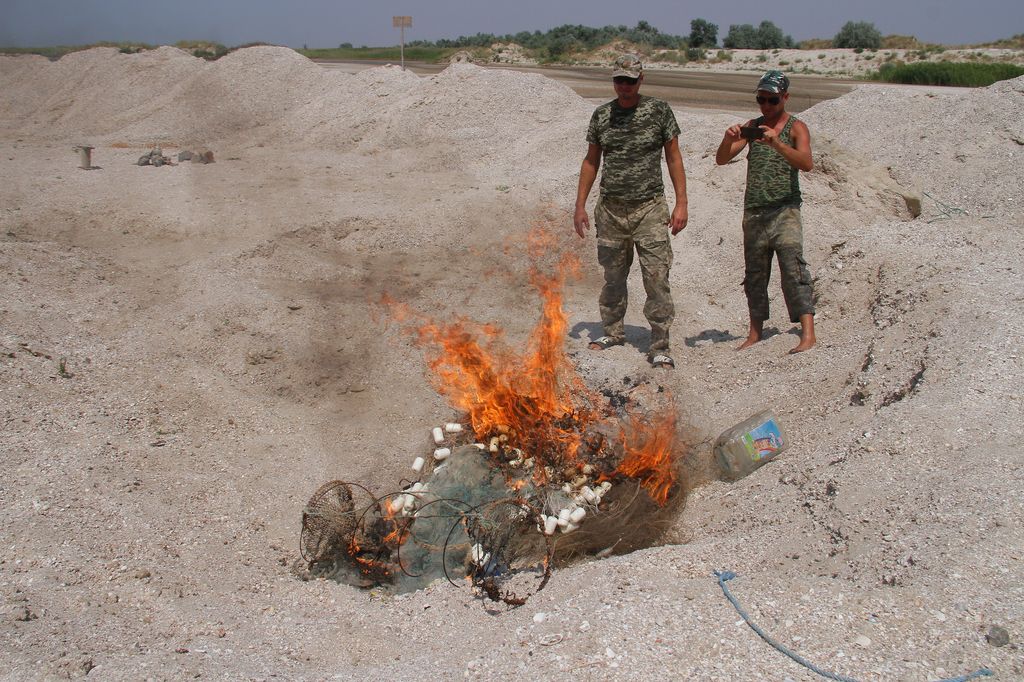 Кстати, расчистка промоины - не основная забота Самообороны. В основном они борются с браконьерами, промышляющими на лимане. По словам Александра, бывает что в день они снимают по три а то и по 4,5 км сетей. Потом незаконные орудия лова просто уничтожаются.