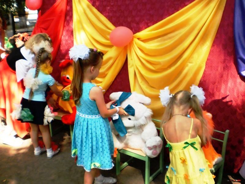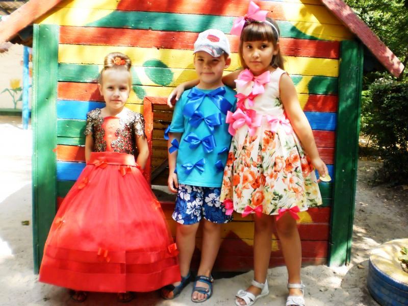 Поэтому 28 июля 2016 в детском саду №8 «Звёздочка» педагоги организовали интересный праздник - День бантиков. На мероприятие малыши пришли с бантиками в одежде, в волосах, даже мальчишки приняли участие в празднике. Сказочные герои: Белоснежка и Кот Леопольд проводили конкурсы, задания-сюрпризы, игры с бантиками: «Подбери по цвету бантик», «Посчитай, сколько бантиков», «Кто ловкий», «Завяжи бантик», «Конкурс дефиле» и другие. А еще дети пели, танцевали, рассказывали веселые юморески. Белоснежка угостила всех детей сладостями, а за самые красивые костюмы участники дефиле получили книжки-раскраски.