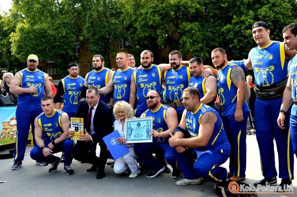 К тому же спортсмены ФСЭУ установили 21 мая в Полтаве необычный рекорд нашей страны, занесенный в Национальную книгу рекордов Украины. Десять стронгменов подняли и пронесли на 25 метров за 26 секунд железобетонную плиту в виде карты Украины весом 3035 кг. Расстояние в 25 метров было выбрано не случайно: оно символизирует 25 лет независимости Украины, которые будем отмечать в этом году. Рекорд проводился под лозунгом «Поднимем Украину вместе!» и символизировал, что всем украинцам необходимо объединиться и тяжело поработать, чтобы счастливо зажить в цветущей стране.