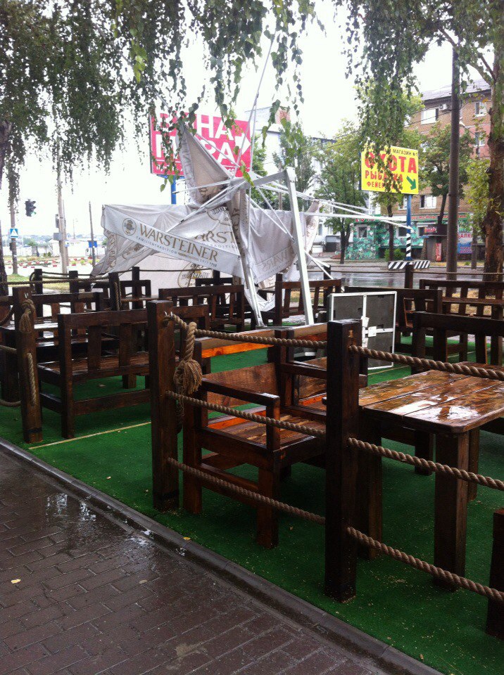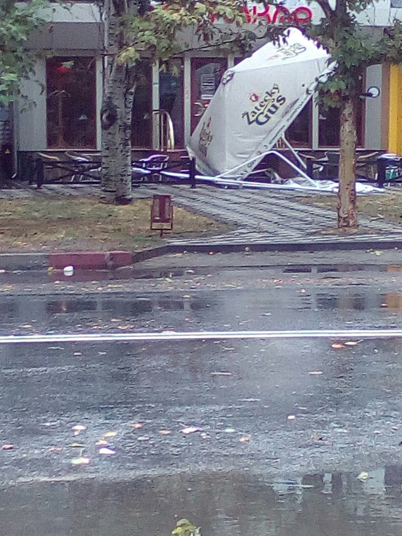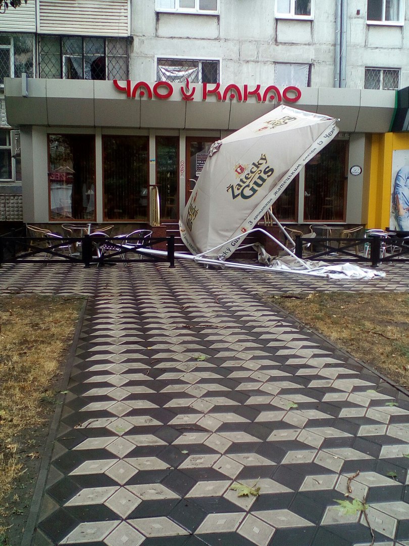 По Мелитополю прокатился шторм: из-за сильного ветра и дождя попадали деревья, на улицах появились гигантские лужи, а зонтики в уличных кафе выворачивало.