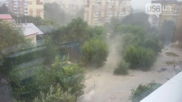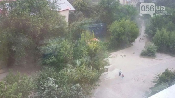 Как уточняет 056.ua, в жилмассиве Левобережный-3 сильному дождю предшествовала пыльная буря.