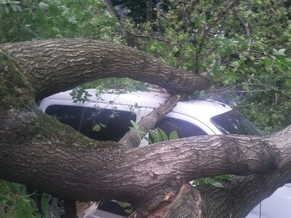 Сообщается, что от упавших деревьев пострадали припаркованные на улице автомобили.