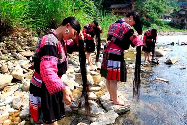 В китайской деревне Хуанлуояочжай в Гуанси-Чжуанском автономном районе проживают женщины с самыми длинными волосами. Деревня является местом компактного проживания яоской народности, а длинные волосы у ее обитательниц объясняются традицей, символизирующей богатство и долголетие.