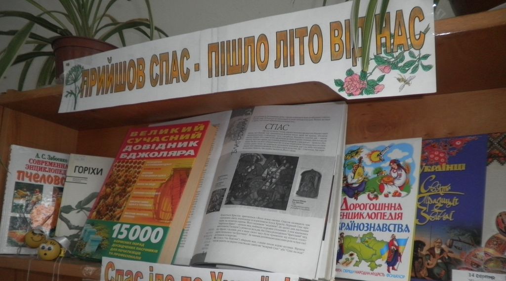 Фото предоставлены ЦБС Мелитополя: Выставка "Прийшов Спас – пішло літо від нас" в библиотеке им. М. Горького.