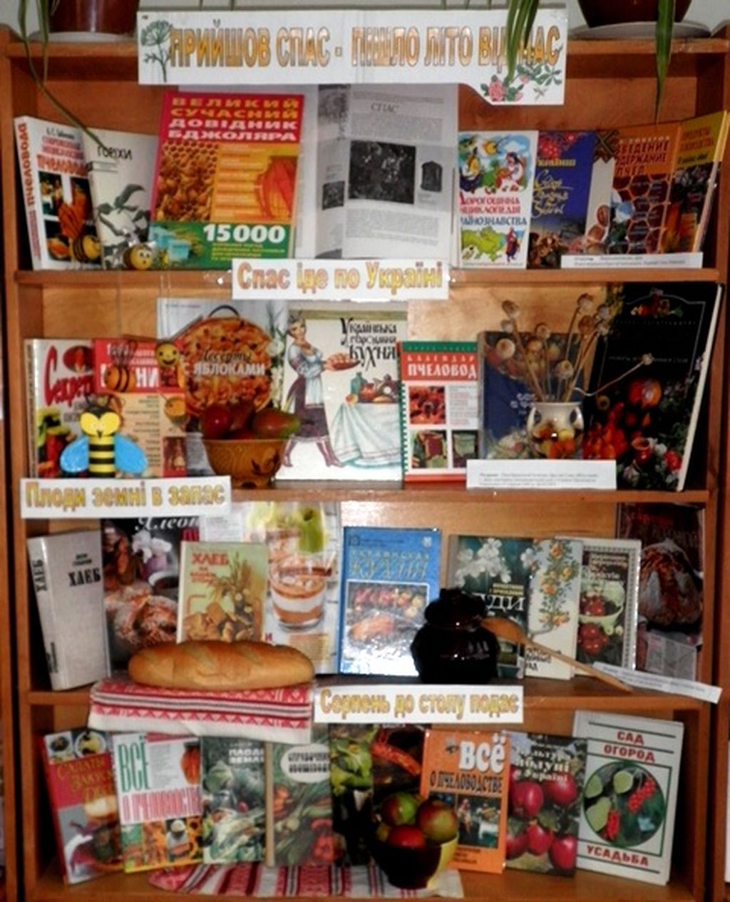 Изюминкой выставки являются сладкие гостинцы к Спасу - фрукты, выпечка и, конечно же, мед. Вкусными дарами библиотекари угостят в эти праздничные дни всех, кто заглянет на выставку "Прийшов Спас – пішло літо від нас" до 31 августа.