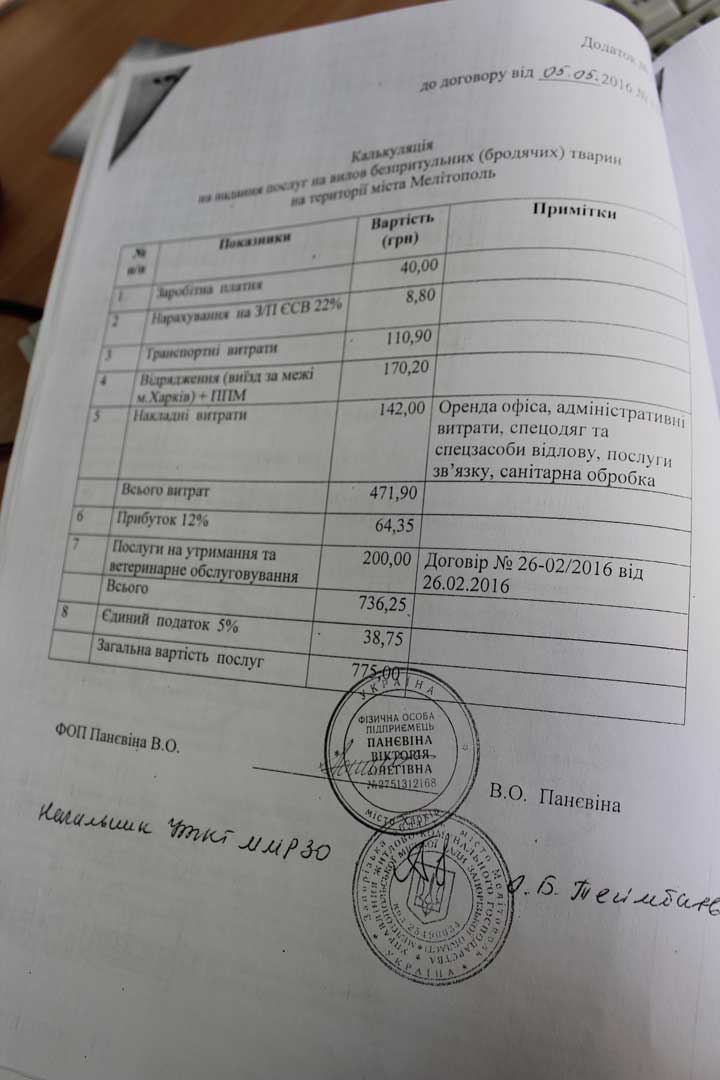 В калькуляции заложена прибыль (12 проц.) - 64,35 грн, услуги на содержание и ветеринарное обслуживание - 200 грн. По договору содержание и ветобслуживание, напомним, осуществляет харьковское КУ "Центр обращения с животными".