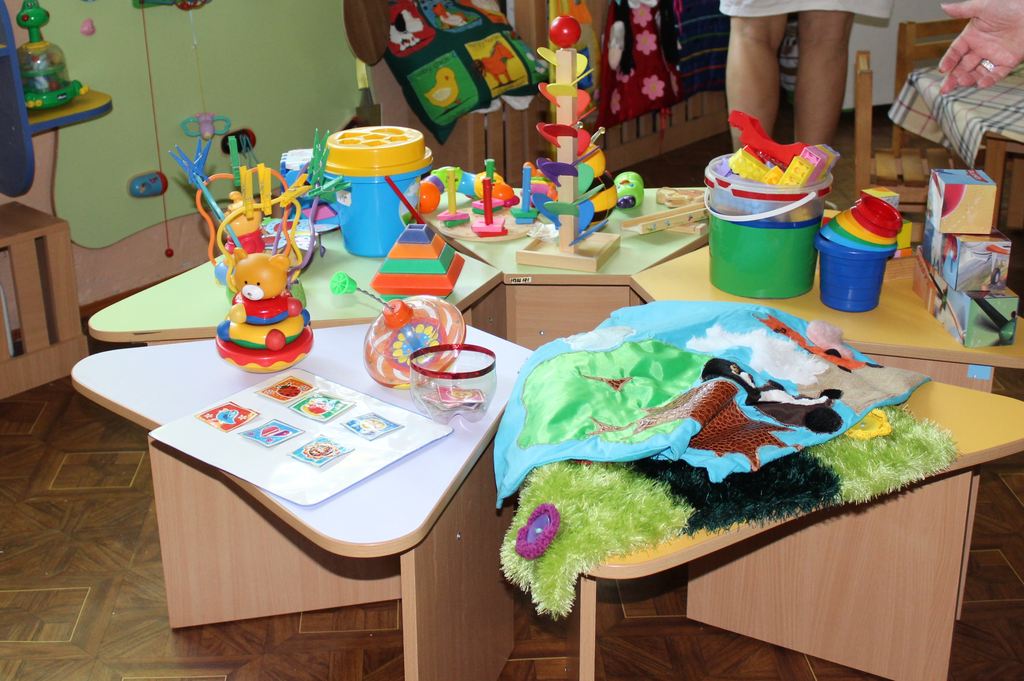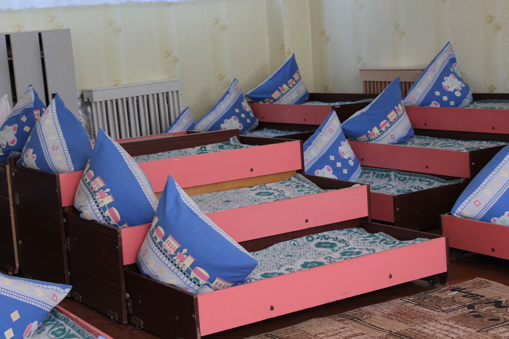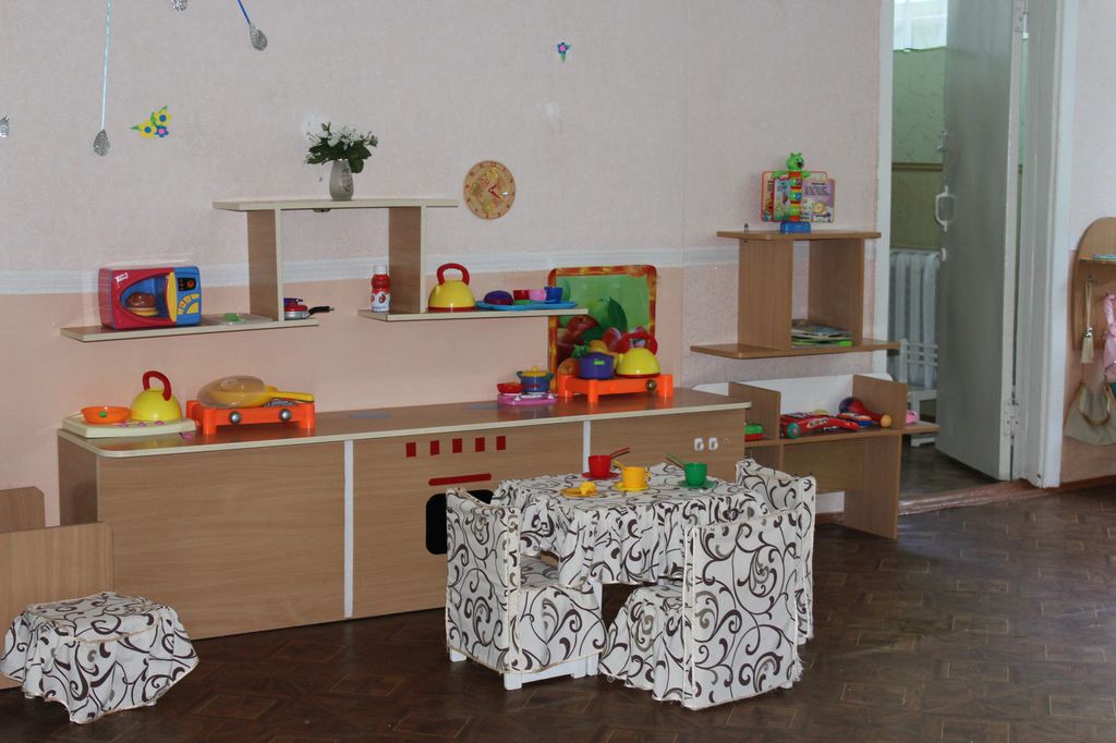 Во всех группах садика сделан ремонт и установлена новая мебель, есть игрушки, для старших детсадовцев стоят мини-парты, для младших – премиленькие крошечные столики со скатерками.