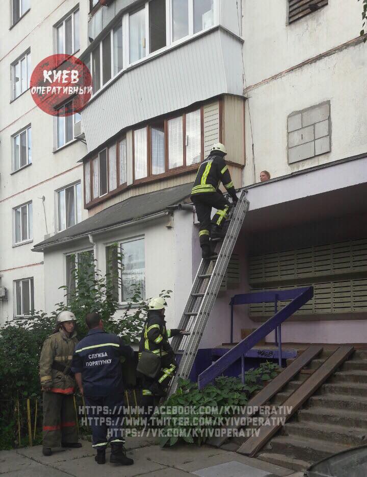 В Киеве на улице Героев Днепра утром 14 августа девушка упала с высоты на козырек подъезда.
