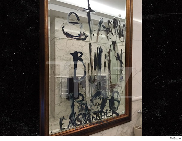 После этого Депп окунул кусок плоти в синюю краску и написал на зеркале "Билли Боб" - имя актера Билли Боба Торнтона, в измене с которым он подозревал Херд.