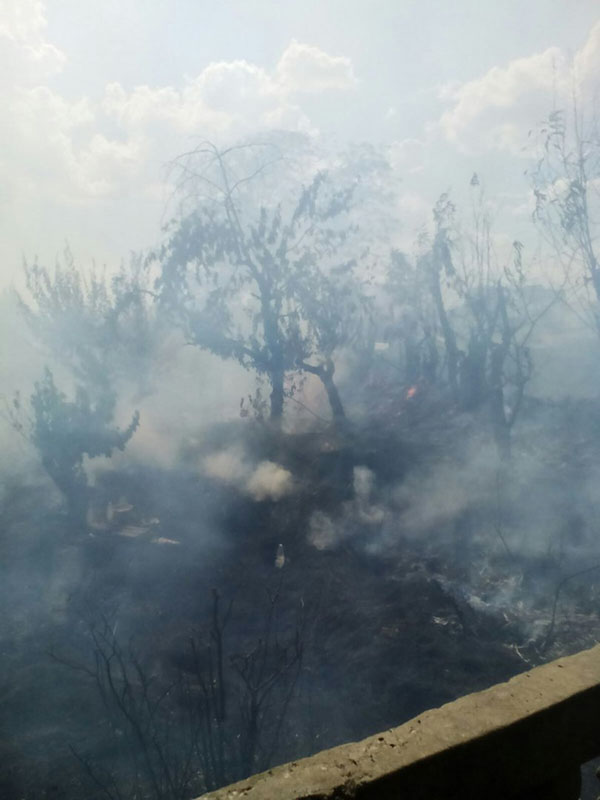 Через 15 минут приехали спасатели. Огонь удалось потушить, но выжженная территория заняла большую площадь.