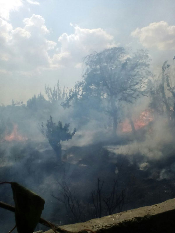 с сухой травы огонь перекинулся на деревья