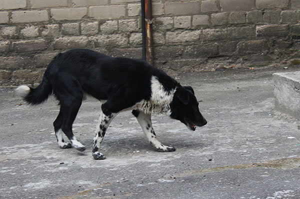 Три дня назад во внутреннем дворе за исполкомом появился "ничейный" черно-белый пес.