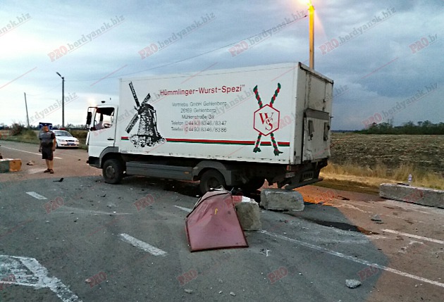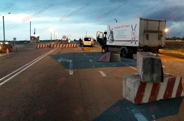 Авария произошла вчера, 18 августа, около семи часов вечера на блокпосту между селами Осипенко и Нововасильевка. По предварительной информации, водитель не заметил предупреждающих знаков. Его многотонный автомобиль на большой скорости снес заграждения.