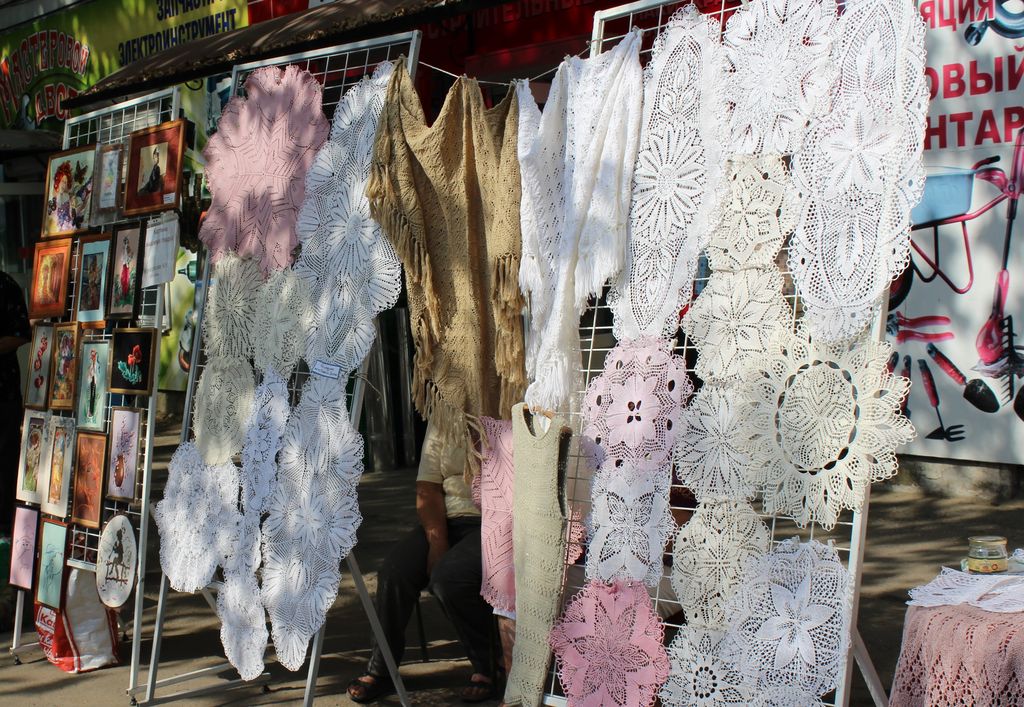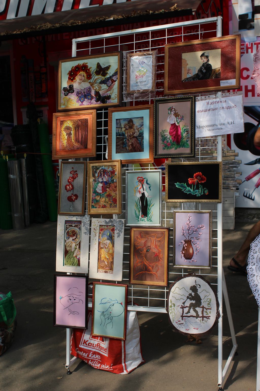 Мелитопольские рукодельницы выложили на продажу свои работы: вязаные скатерти и салфетки, вышитые рушники и картины, украшения и посуду.