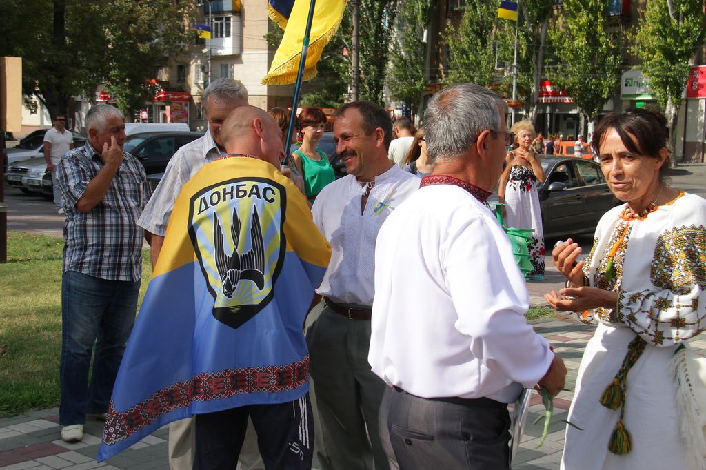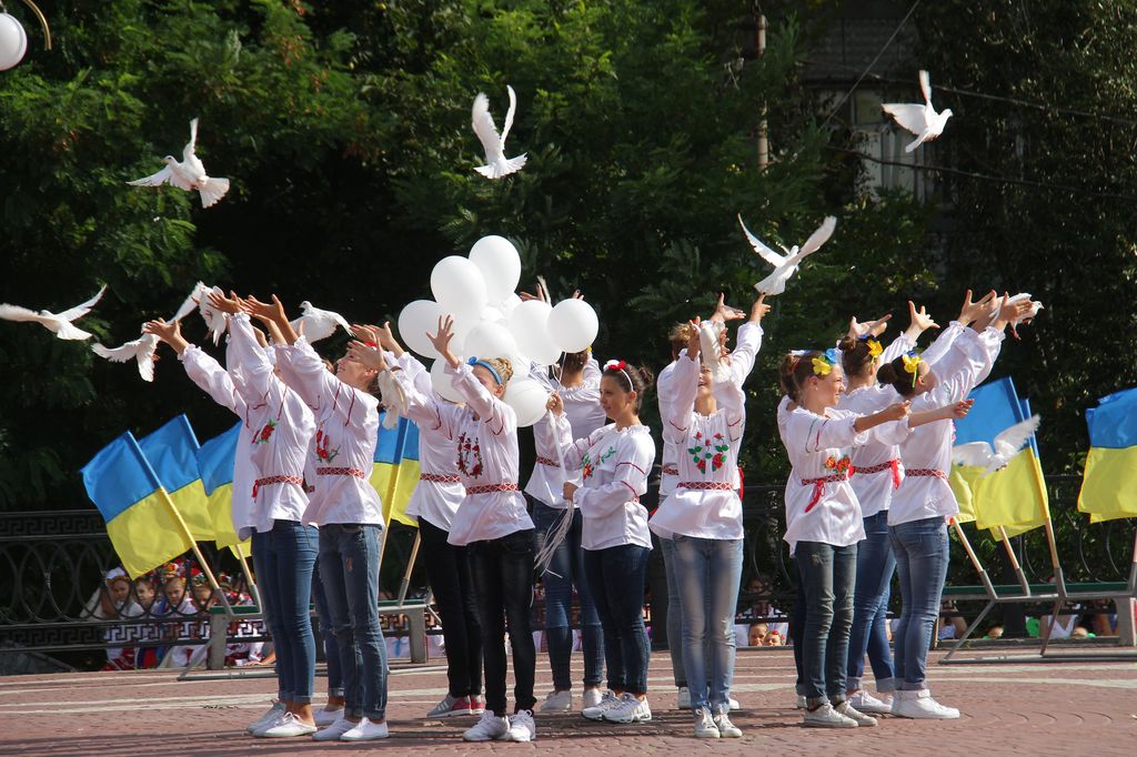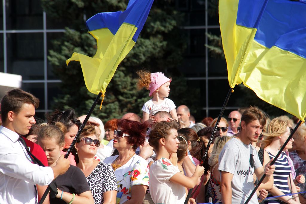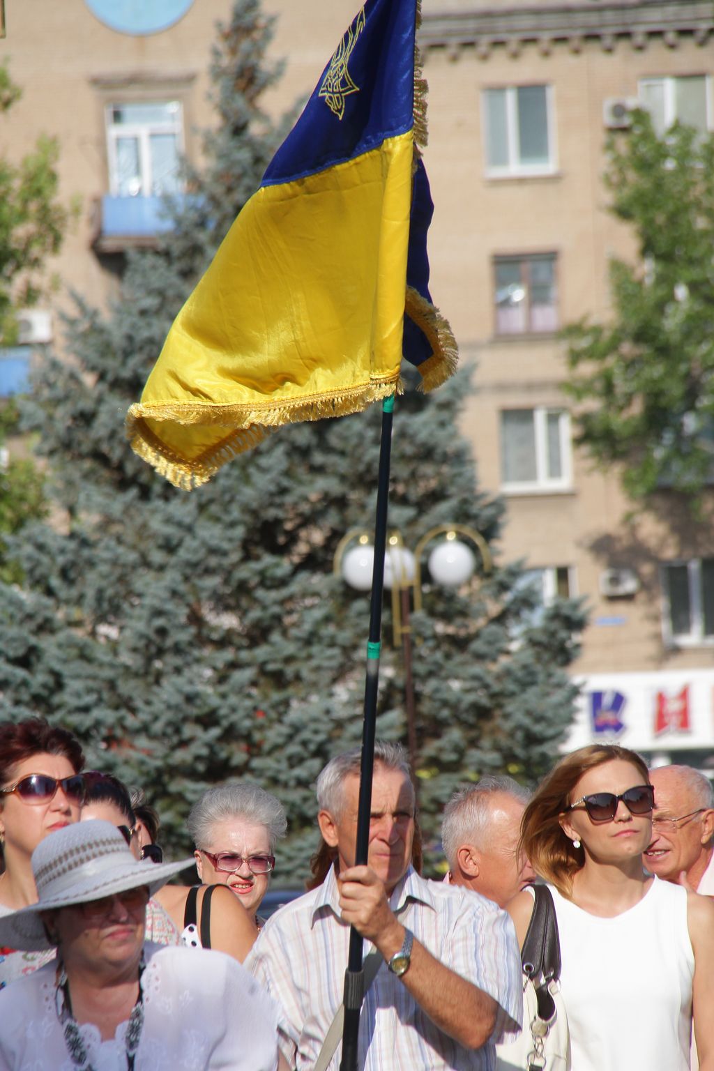23 августа площадь Победы была убрана в цвета национального флага Украины. Мелитопольцы в вышиванках и без, с флажками, желто-голубыми лентами на груди и воздушными шарами собрались на торжественное мероприятие, посвященное Дню Государственного флага и Дню Независимости Украины, которой завтра исполняется 25 лет.