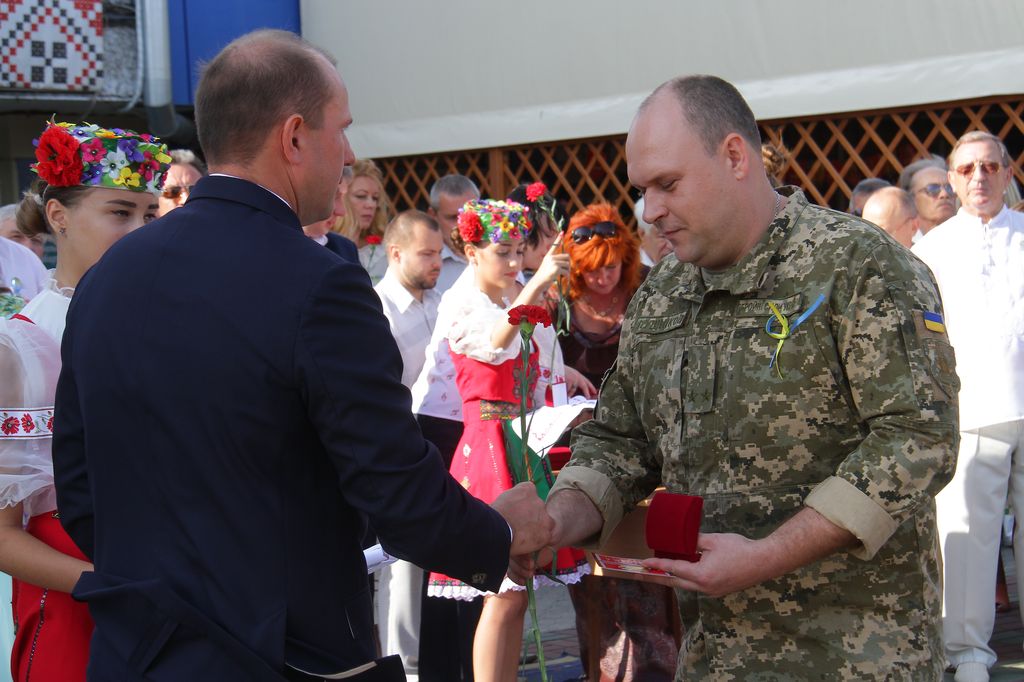 Почетным гостям праздника выпала миссия вручить медали "За оборону рідної держави" бойцам 23 отдельного мотопехотного батальона "Хортица", военнослужащим ВСУ за защиту государственного суверенитета и территориальной целостности Украины во время выполнения боевых заданий , а волонтерам - за значительные достижения в деле помощи украинской армии. Кроме того, орденами "25 лет независимости Украины" за добросовестное выполнение своих служебных обязанностей, профессионализм, успехи в боевой подготовке были награждены командиры и их заместители военных частей, дислоцирующихся в Мелитополе. Грамотами были отмечены не только военные, но и люди мирных профессий, которые внесли свой трудовой вклад в развитие независимости страны: начальники управлений и отделов, директора школ и педагоги, предприниматели, руководители промышленных предприятий, краеведы, общественные активисты, волонтеры.