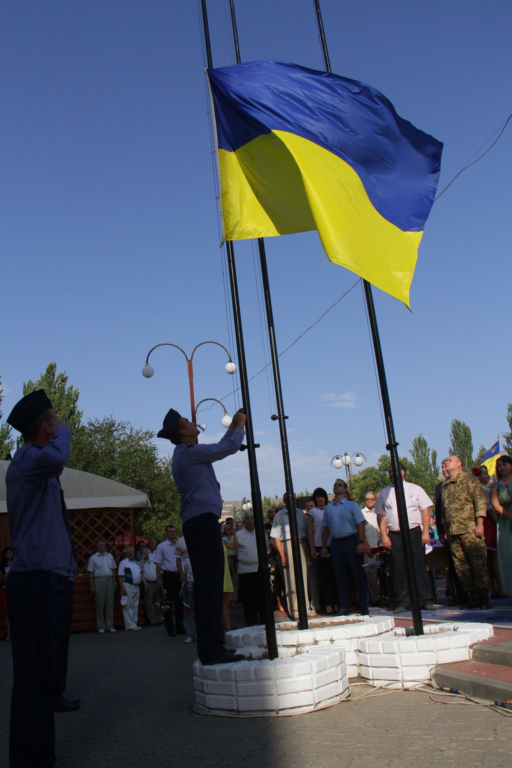 Торжество открылось исполнением гимна Украины и поднятием на флагштоке перед гостиницей "Мелитополь" государственного флага. Со словами поздравлений с 25-м днем рождения нашей державы к мелитопольцам обратился городской голова Мелитополя Сергей Минько, заместитель губернатора Эдуард Гугнин, председатель Мелитопольской райгосадминистрации Александр Мангул, военком Мелитопольского объединенного горвоенкомата Александр Лушников. Все они желали мира, процветания, благополучия Мелитопольщине и ее жителям.