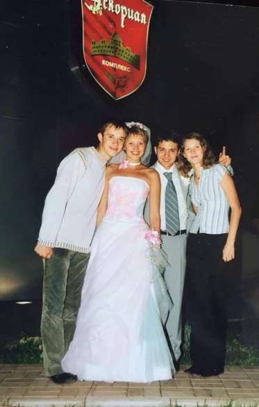 Например, на одном из фото Владимир Зеленский позирует со своей женой Еленой, с которой они поженились в этот день в Кривом Роге. Рядом стоит и жена Артема Гагарина. А на другой фотографии с сестрой Артема Ириной Пикаловой стоит ведущий Анатолий Анатолич.