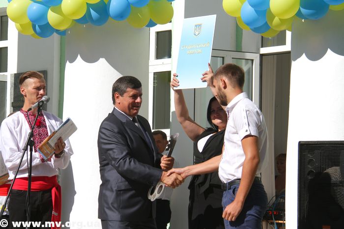 Ректор вручил памятные подарки первокурсникам, которые набрали наивысшие баллы по итогам ВНО, и выразил надежду, что они станут отличниками и в вузе. Это выпускница мелитопольской гимназии №5 Полина Зоря, набравшая 195 баллов по английскому языку; выпускники мелитопольской гимназии №10 Кирилл Щербаков, у которого 195 баллов по истории Украины, и Дмитрий Ступинский, по украинскому языку и литературе показавший результат 188 баллов; выпускник мелитопольской гимназии №19 Сергей Коваль, набравший по физике 193 балла; выпускник Акимовской гимназии Олег Калинин, у которого по истории Украины - 188 баллов; выпускница Веселовской районной разнопрофильной гимназии Анастасия Шило, набравшая по украинскому языку и литературе 188 баллов.