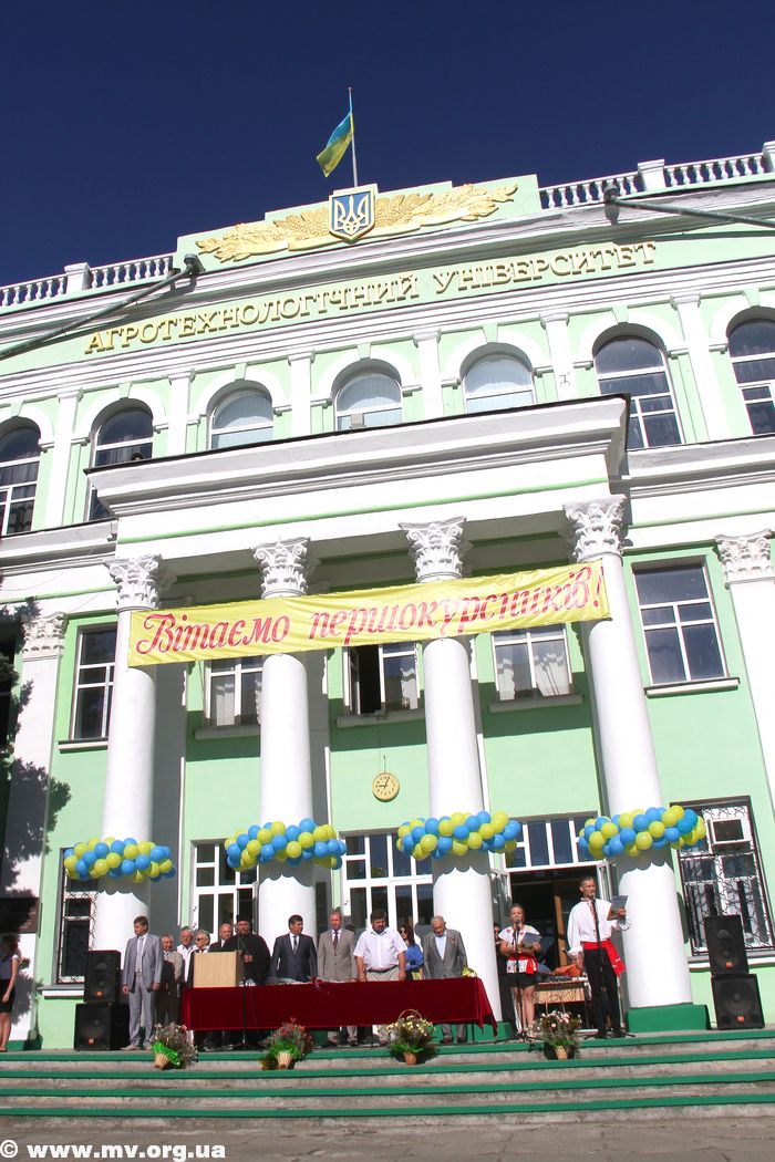 Торжественное собрание в самом большом вузе Мелитополя началось с исполнения гимна Украины и внесения двух флагов - государственного и флага вуза. День знаний - праздник старта учебного года для всех студентов ТГАТУ, но главными все же на торжестве были первокурсники, которым было посвящено очень много внимания. По словам В. Кюрчева, в этом году в университет на первый курс учебно-квалификационных уровней "бакалавр", "специалист" и "магистр" дневной формы обучения зачислено более 1200 человек. Они успешно прошли независимое оценивание знаний и внутриуниверситетские испытания. Но особую радость, как отметил ректор ТГАТУ, он испытывает за студентов, которые пришли в вуз на базе полного общего среднего образования. Потому, что еще никогда за 25 лет независимости нашей страны университеты и абитуриенты не знали такой запутанной системы отбора студентов на места госзаказа.
