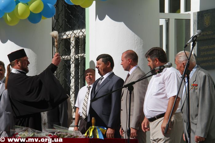 Со словами благословения и молитвы в начале трудного студенческого пути обратился к собравшимся благочинный церквей Мелитополя, протоиерей Максим Смирнов. И по доброй традиции он окропил святой водой студентов, их родителей и преподавателей.
