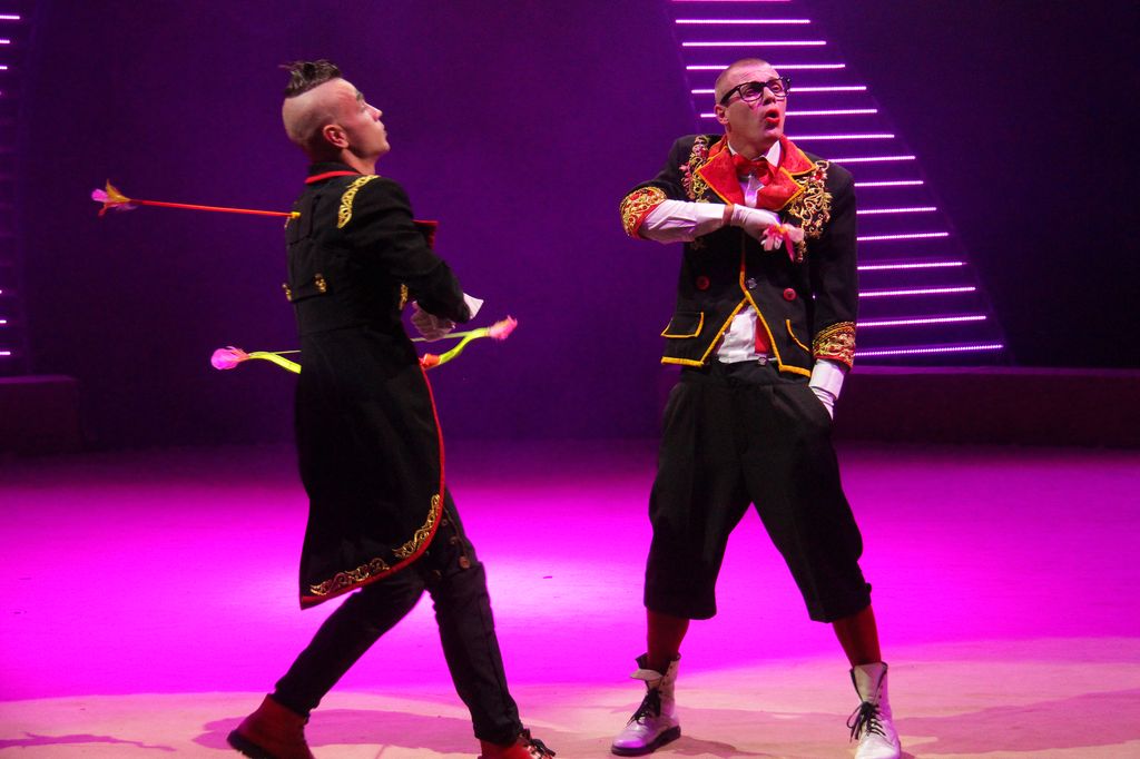 По цирковой традиции были номера с животными и перфоманс от иллюзионистов. Также зрителю предложили танцевальные композиции и, конечно, выступления клоунов. Которые, стоит отметить, умело работали с залом, привлекали к номерам зрителей и для острастки устроили «перестрелку» попкорном прямо среди зрительских рядов.