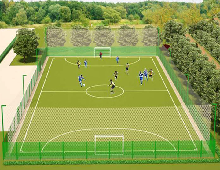 Представитель подрядчика, которого выбрала ФФУ, Максим Баранчук рассказал о новом строящемся поле следующее: «Сейчас мы снимаем верхний слой грунта, чтобы произвести засыпку разными видами щебня. А вот верхний слой будет состоять из искусственного покрытия – полипропилена высотой 40 мм. Поле для мини-футбола будет 22 на 42 метра, его не нужно будет ни удобрять, ни косить. А вот немного поливать, главным образом в жару, все-таки будет нужно, чтобы это покрытие не перегревалось. Покрытие итальянского производства, служить будет 7-10 лет. Важное условие при эксплуатации – на поле нельзя будет играть в шипованой обуви, здесь можно будет играть только в обуви с гладкой подошвой».
