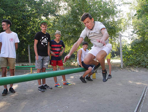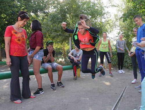 Ну и какой же день здоровья без утренней гимнастики. Все присутствующие ученики размялись перед предстоящими соревнованиями под зажигательную музыку. Вместе с детьми позаниматься вышла и Ирина Анатольевна. После гимнастики все школьники разбрелись по зонам проведения соревнований.
