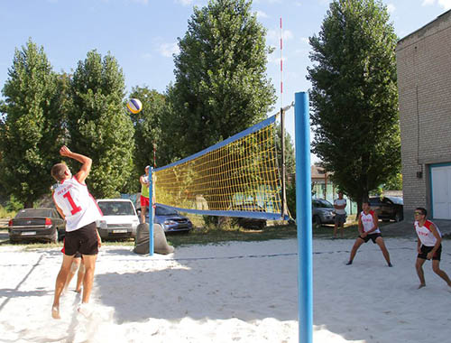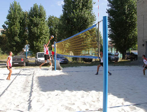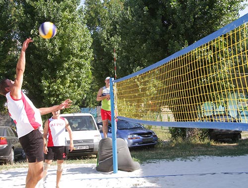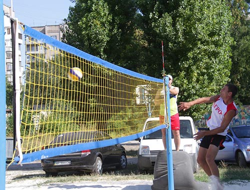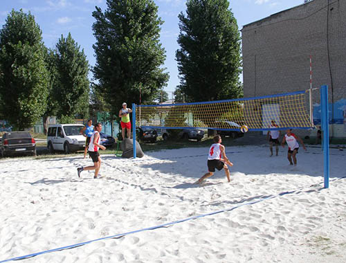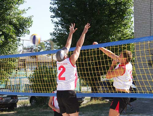На небольшом кусочке пляжа, организованном за зданием спортшколы еще года 3 назад, за звание лучшей соревнуются 8 команд: 4 из Веселовского района и 4 из Мелитополя. Особенностью пляжного волейбола является небольшое количество участников, ведь каждая команда состоит всего лишь из 2 человек.