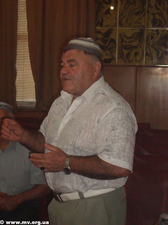 Сейтасан Аблаев, председатель мусульманской религиозной общины Мелитополя «Ираде», вначале рассказывает собравшимся о Великом потопе, первой мечети, которую построил еще Адам, о Празднике жертвоприношения Курбан-байрам, когда Аллах потребовал от Ибрагима принести в жертву своего сына, но потом смилостивился и разрешил заменить его барашком. А потом переходит на общественные новости.
