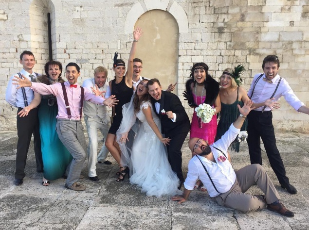 Так, 9 сентября пара тихо расписалась в одном из московских ЗАГСов. На роспись влюбленные пришли вдвоем в джинсах и футболках. А настоящее торжество супруги устроили в Италии.
