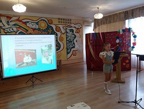 И 12 сентября состоялось первое заседание учреждения, в рамках которого прошел первый творческий конкурс презентаций "Я в мире искусства" среди учеников 5-11 классов. Согласно условиям конкурса участники представили себя и свои творческие достижения в разных видах искусства, рассказали о поддержке семьи и руководителей. Все это нужно было рассказать за пять минут на украинской и английском языках. Не оставила без теплых слов участников конкурса директор гимназии №9 Людмила Чугай, которая заметила, что презентовать себя и свои достижения непросто.