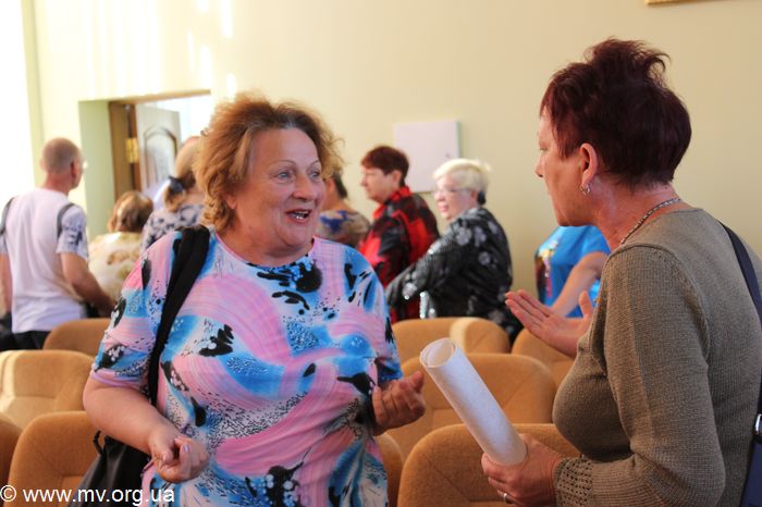 Особенно обратила внимание на себя дама, которая сначала попыталась донести до присутствующих идею о том, что Восточная и Западная Украина - это разные Украины, а потом в споре с другой общественницей рассказывала о том, что тем, кто знает английский, пенсию будут платить в долларах.