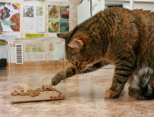 Такие головоломки обеспечивают кошек физическими упражнениями и стимулируют их умственную деятельность.. Кошки, напомним, являются хищниками, и в естественной среде едят небольшими порциями в течение всего дня. Однако поймать добычу в дикой природе достаточно сложно, меньше половины кошачьих атак заканчиваются успехом. В домашних условиях кошкам предоставляют практически неограниченный доступ к пище. Так что не удивительно, что домашние кошки имеют высокий риск развития ожирения, диабета, проблем с суставами и хронических заболеваний нижних мочевыводящих путей!