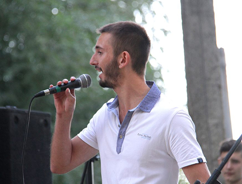 И только трое зарегистрированных участников отличились от общей массы. Молодая София Нечипоренко читала свои авторские стихотворения, а воспитанники вокально-театрального ансамбля «Непоседы» продемонстрировали сказку «О здоровом образе жизни». Что-то среднее между стихом и песней исполнил также самый первый участник конкурса, уже немолодой, но еще очень бодрый Анатолий Прядко, который даже получил букет от поклонницы.
