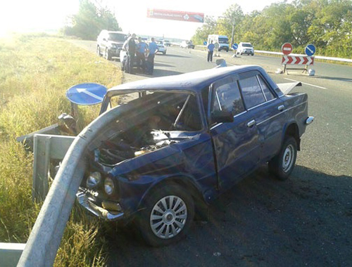 ВАЗ 2103 наехал на металлическое ограждение, которое проткнуло автомобиль по всей длине. Два пассажира погибли на месте.
