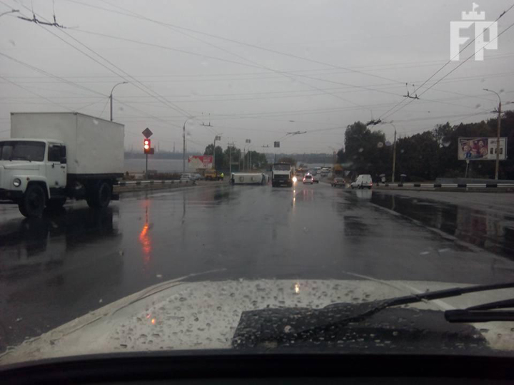 Во вторник, 20 сентября, около 8.20 на въезде на плотину ДнепроГЭС со стороны Правого берега перевернулась маршрутка.
