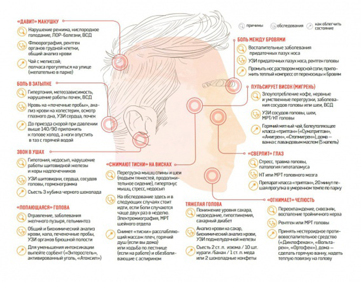 «Универсальным средством для снятия боли является вещество ибупрофен («Солпадеин», «Нурофен», «Ибупрофен»), - говорит терапевт-кардиолог Виктория Форосенко. - Если же вы знаете, что голова разболелась в результате стресса или нервного перенапряжения, сначала примите успокоительный препарат (валериана, «Сонафит», «Валдисперт»), если не помогло - средство на основе парацетамола («Панадол», «Парацетамол», «Эффералган»). При внезапной боли «на погоду» помогут препараты аспирина (ацетилсалициловая кислота, «Упсарин», «Цитрамон»)».