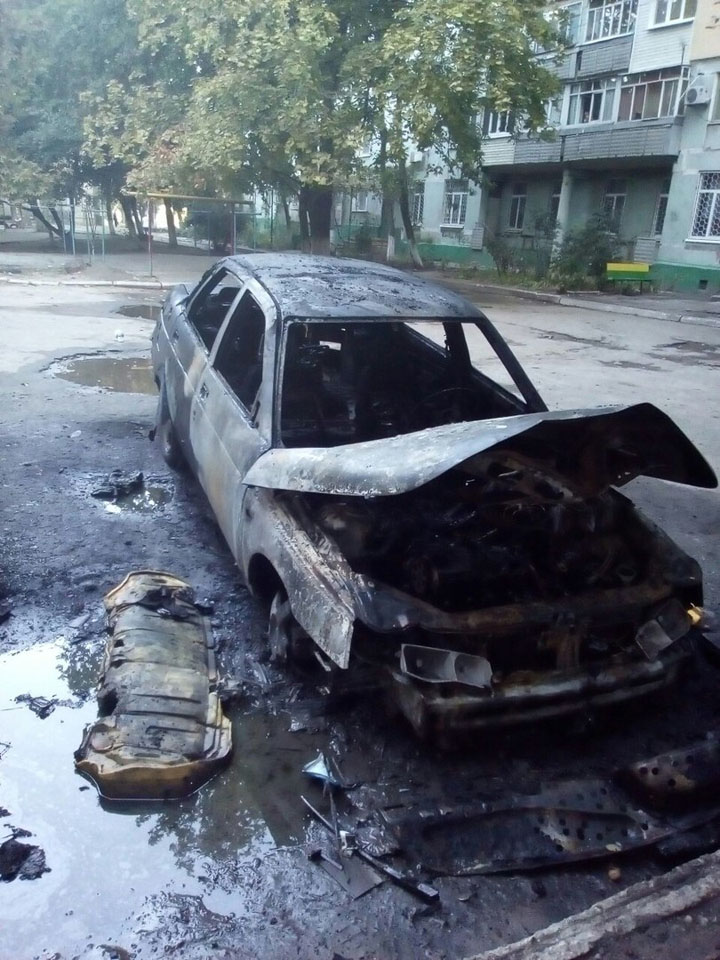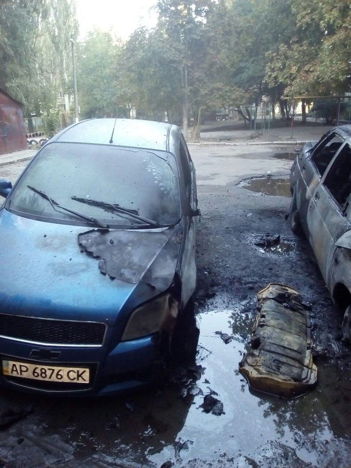 Сегодня на Новом Мелитополе сгорели два автомобиля. На месте происшествия найдена бутылка, предположительно, с зажигательной смесью.