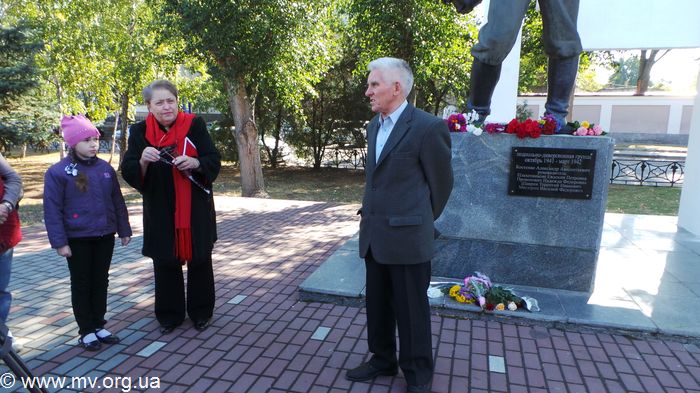 У памятника героям из подпольно-диверсионной группы Александра Костенко (руководитель Александр Авксентьевич Костенко, члены группы Евдокия Петровна Плахоникова, Надежда Федоровна Прокопович, Терентий Иванович Шаврин, Василий Федорович Мисюрин; действовала с октября 1941 по март 1942 гг.) собрались представители городских ветеранских организаций. Открыл митинг председатель городского совета ветеранов войны и труда Евгений Бабенко, который отметил, что необходимо хранить память о тех, кто в суровые годы Великой Отечественной войны, в подполье, в партизанских отрядах защищал нашу Родину.