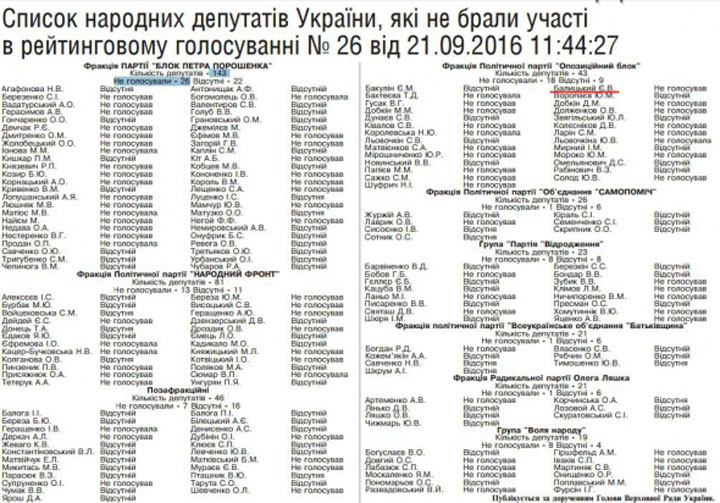. Прогульщики - це видсутни. А Балицкий просто куй положил на вашу промакашку, он не голосовал.Схожі новини: