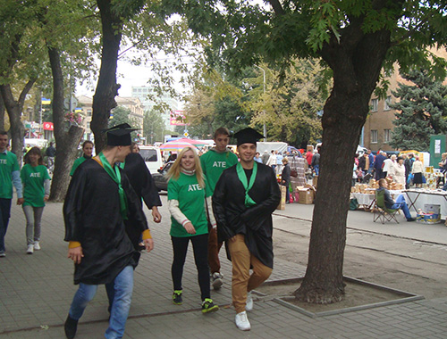 Но на этом ярмарка не заканчивается, она на перекрестке заворачивает на ул.Героев Украины (бывш.Кирова), где свои выставки и стенды разместили университеты и заводы Мелитополя. К ним вышли мэр города Минько и все руководство города, а также депутаты городского и областного советов.