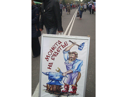 К раскладке сувениров со смешными надписями типа «Следуй за своей мечтой… Иди спать!» подходят две женщины с сумками. Не глядя на сувенирную раскладку, они просят продавца присмотреть за их сумкой: «Мы тут овощей купили, они тяжелые, можно мы оставим ее у вас, а сами пока пройдёмся по ярмарке?». Продавец кивает, и женщины радостно ставят ей под прилавок сумки и спешат дальше.