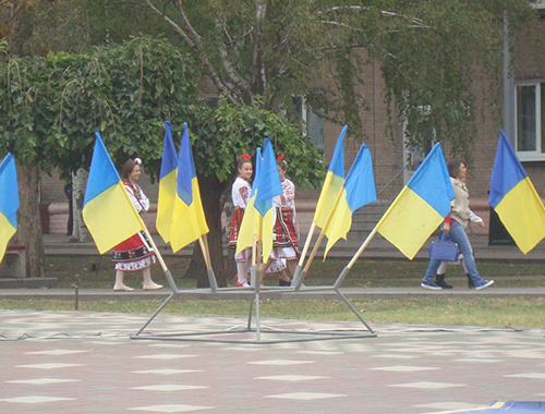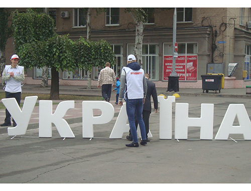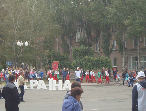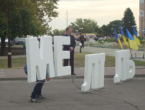 Тем временем город словно просыпается – неожиданно людей на ярмарке становится вдвое больше, а в разных местах включается музыка – кто-то поставил народные украинские мелодии в современном исполнении, кто-то эстрадные композиции, а у памятника Т.Шевченко включили украинский рок – «Океан Эльзы», Руслану, «ВВ». Здесь же начали выставлять огромные буквы «Мелітополь» и «Україна». Едва их выставили, как народ сразу принялся фотографироваться возле них.