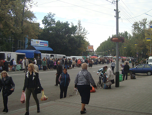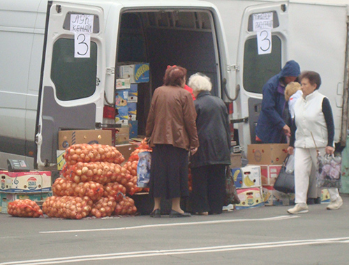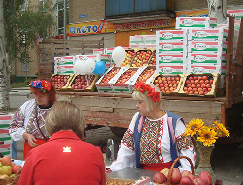 Бедовая бабушка с палочкой идет по проспекту Б.Хмельницкого от Почтампта к площади Победы вдоль рядов с овощами и фруктами, подсолнечным маслом и колбасой, салом и молочкой и всем задает вопрос: «Почем ваш товар?». Старушка явно решила осмотреть все, и лишь потом что-то приобрести на ярмарке, посвященной Дню города Мелитополя-2016. Продавцы ей отвечают, мол, перец 3-4 грн., картошка оптом 2,50-3,50.