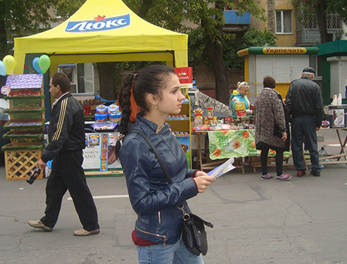 Директора заводов, ректоры университетов представляют руководству свои предприятия, журналисты бегают с фотоаппаратами и видеокамерами – все при деле. А вдалеке, у танка и стелы 200-летия Мелитополя, уже развернута сцена – это готовится новый этап празднования Дня города. Но пока город ярмаркует, продает и покупает.