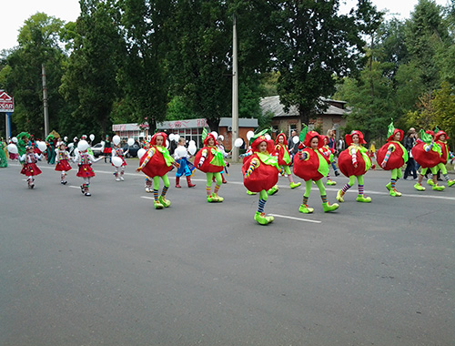 Не пропустили этого торжества и коллективы ДК им. Шевченко и ДК железнодорожников. Также в колонне прошли люди, представляющие наш город как черешневый и медовый: постоянные участники фестиваля "Черешнево" и маленькие пчелки.